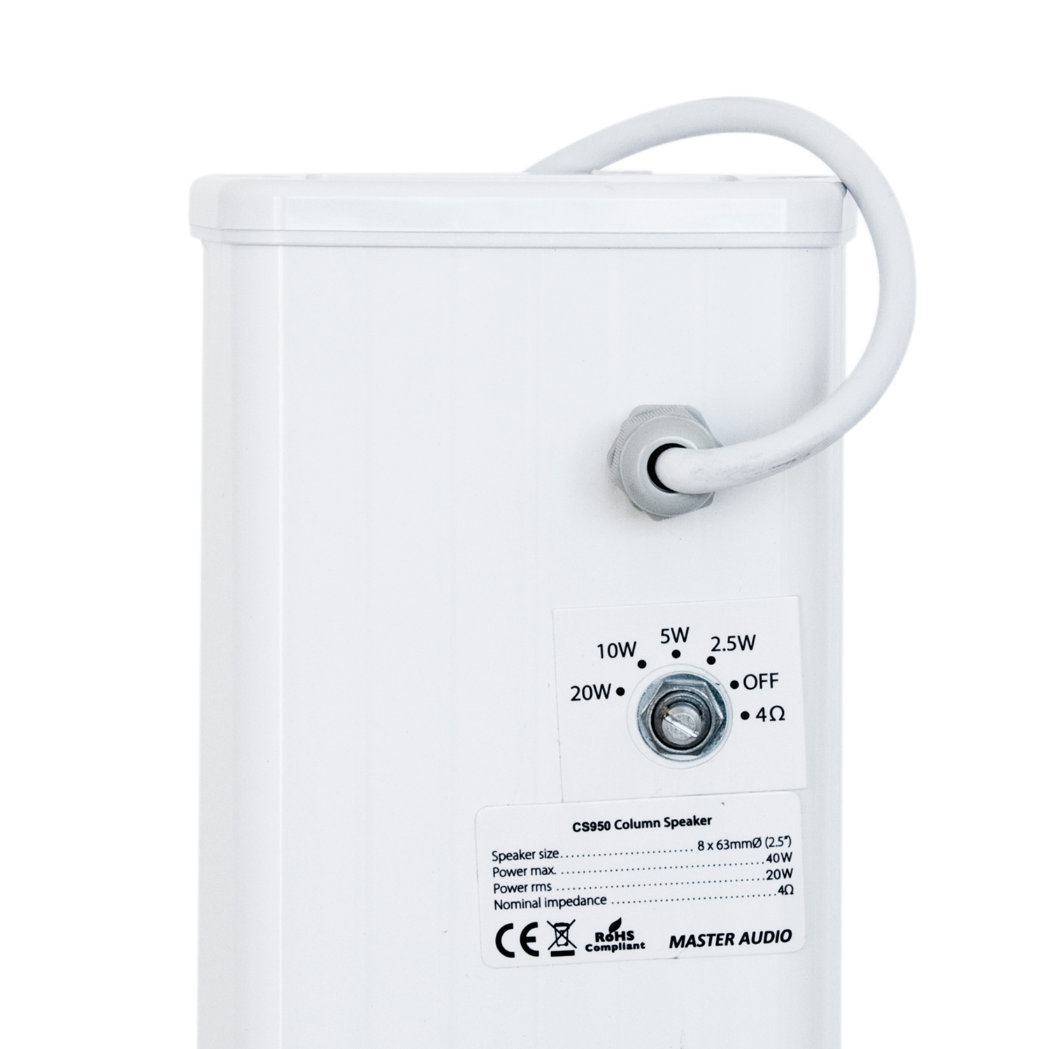 Home Colunas de som passivas Coluna de som c/8 altifalantes 4 Ohms /100 Volts Coluna de som c/8 altifalantes 4 Ohms /100 Volts 4 unidades em stock | SKU: CS950 118,32 € 139,20 € Desconto de %. IVA incluído. Comprar Contactar Adicionar à wishlist - Coluna com 8 Altifalantes 2,5" 60 mm FULLRANGE - Potência MÁX: 20W - Potência RMS: 20W (4 Ohms) / 20-10-5-2,5W(100V) - Faixa de frequência: 200Hz-16KHz - SPL(@1W /m): 93 dB - Dimensões: 105 x 75 x 690 mm - Peso: 3,6Kg - Inclui suporte - Caixa: metal - Cor: branca Marca Master Audio Tags Colunas de som passivas Partilhar