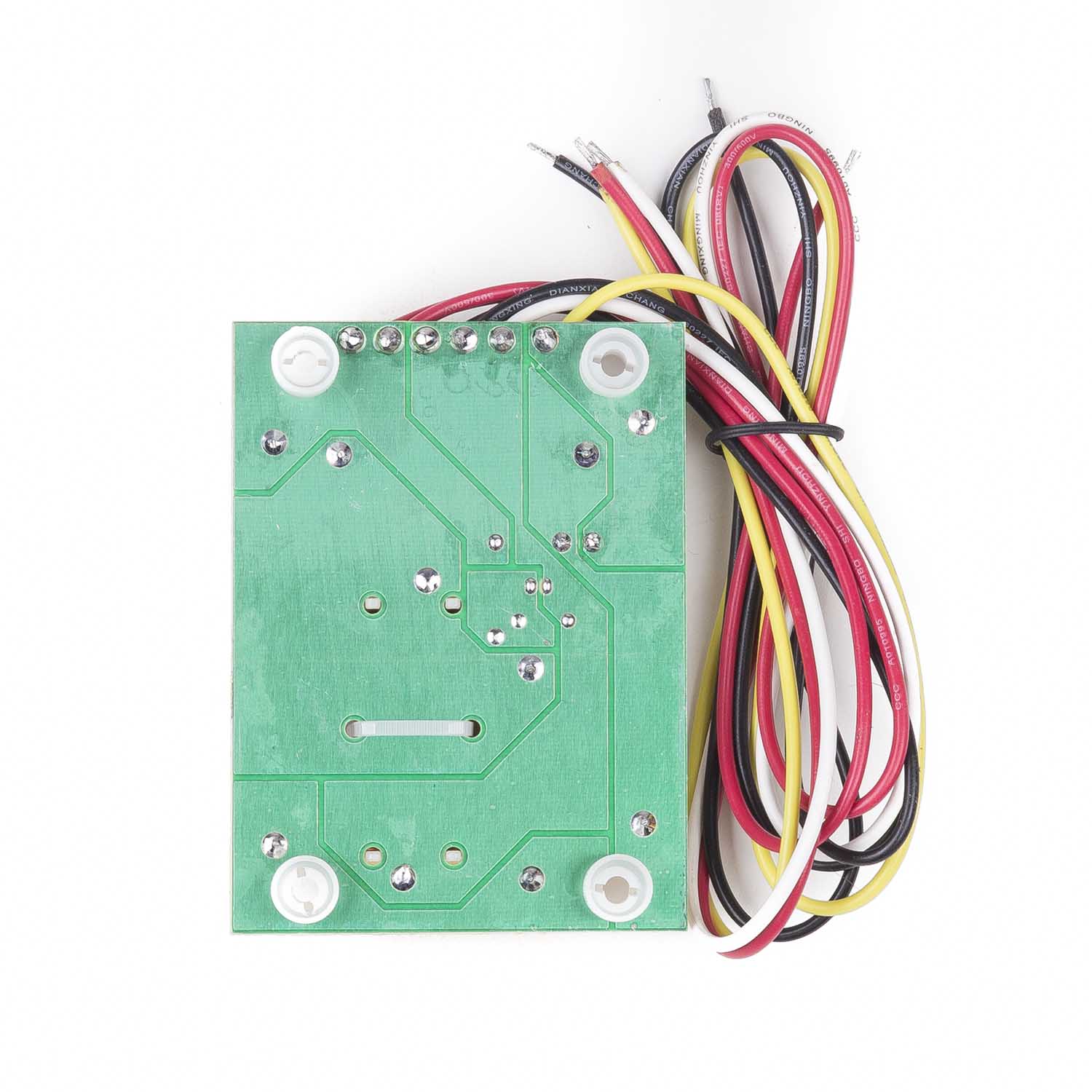Placa eletrónica com bobina, resistores, condensador e cabos coloridos
