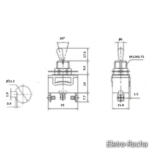 -Tipo de interruptor: alavanca, unipolar, 3 pinos