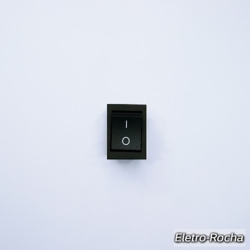 Interruptor preto com símbolos I e O sobre fundo branco