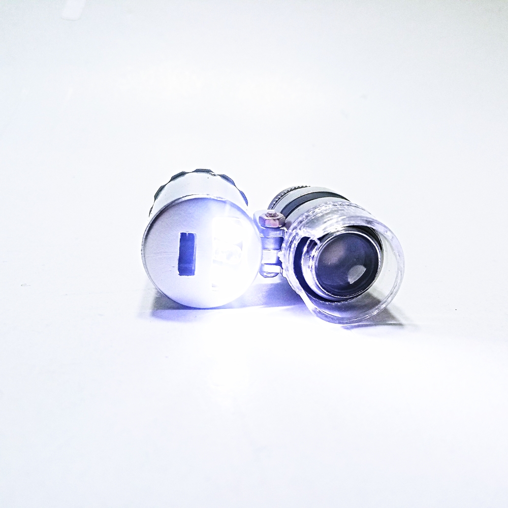 Microscópio para joalheiro com ampliação 60 vezes com luz led branca e UV.